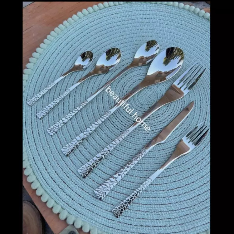 سرویس قاشق و چنگال درجه یک 24 نفره 120 پارچه دهانه اروپایی نقره ای یونیک آلمان اصلی ۶ میل ضخیم (بدون چمدون)