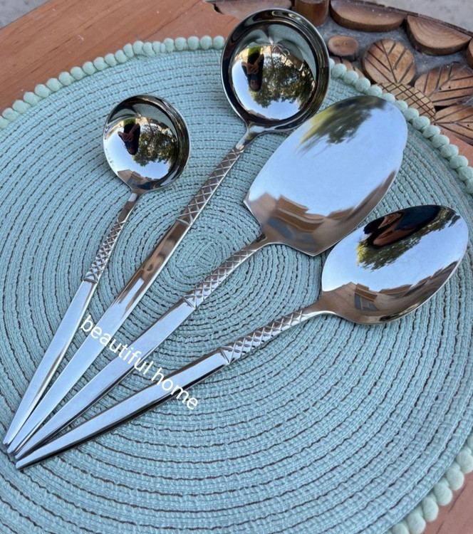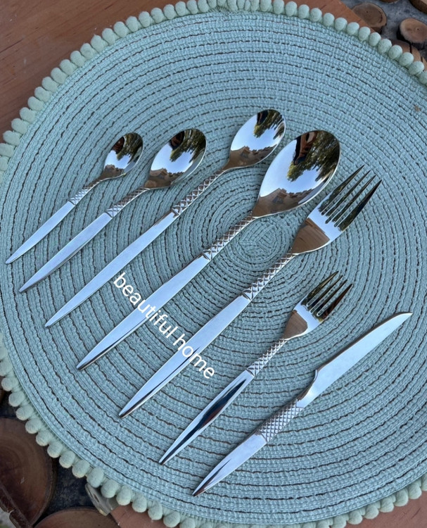 سرویس قاشق و چنگال درجه یک 24 نفره 144 پارچه دهانه اروپایی نقره ای یونیک آلمان اصلی ۶ میل ضخیم (بدون چمدون)
