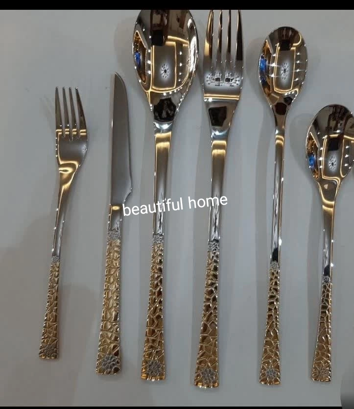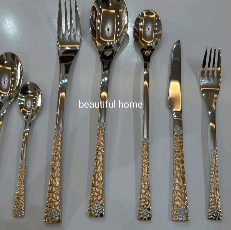 سرویس قاشق و چنگال درجه یک 24 نفره 120 پارچه دهانه اروپایی نیمه طلایی یونیک آلمان ۶ میل ضخیم (بدون چمدون)