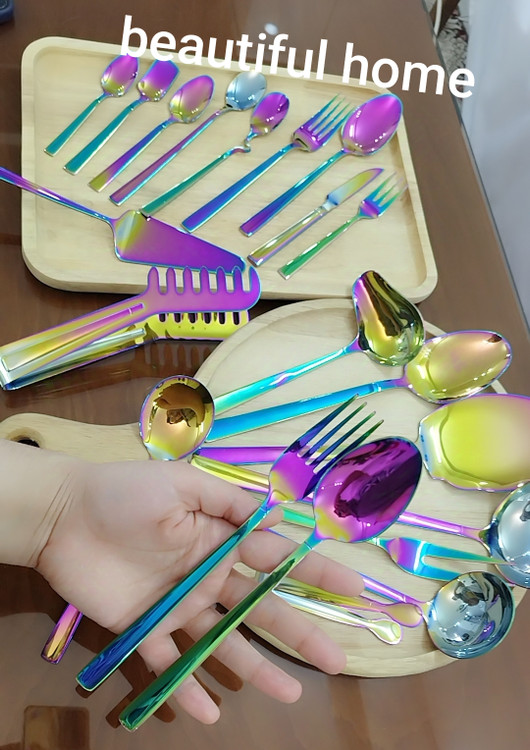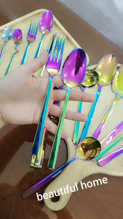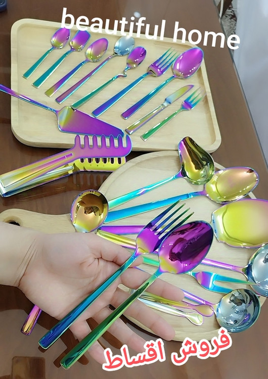 سرویس قاشق و چنگال درجه یک 24 نفره 144 پارچه هفت رنگ یونیک آلمان اصلی طلایی نقره ای (بدون چمدون)