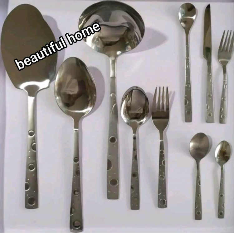 سرویس قاشق چنگال 42 نفره 152پارچه ضدزنگ وسیاه شدن (( سرویس اقتصادی )) با چمدون چرمی