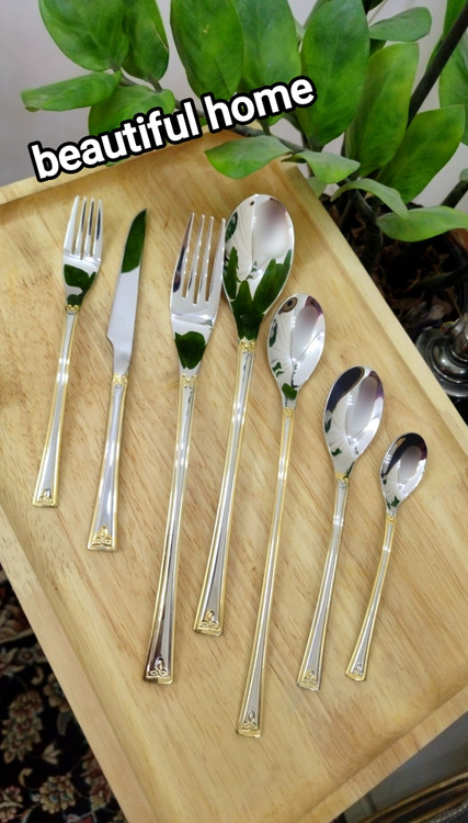 سرویس قاشق و چنگال درجه یک 24 نفره 120 پارچه دهانه اروپایی نیمه طلایی یونیک آلمان اصلی ۶ میل ضخیم (بدون چمدون)