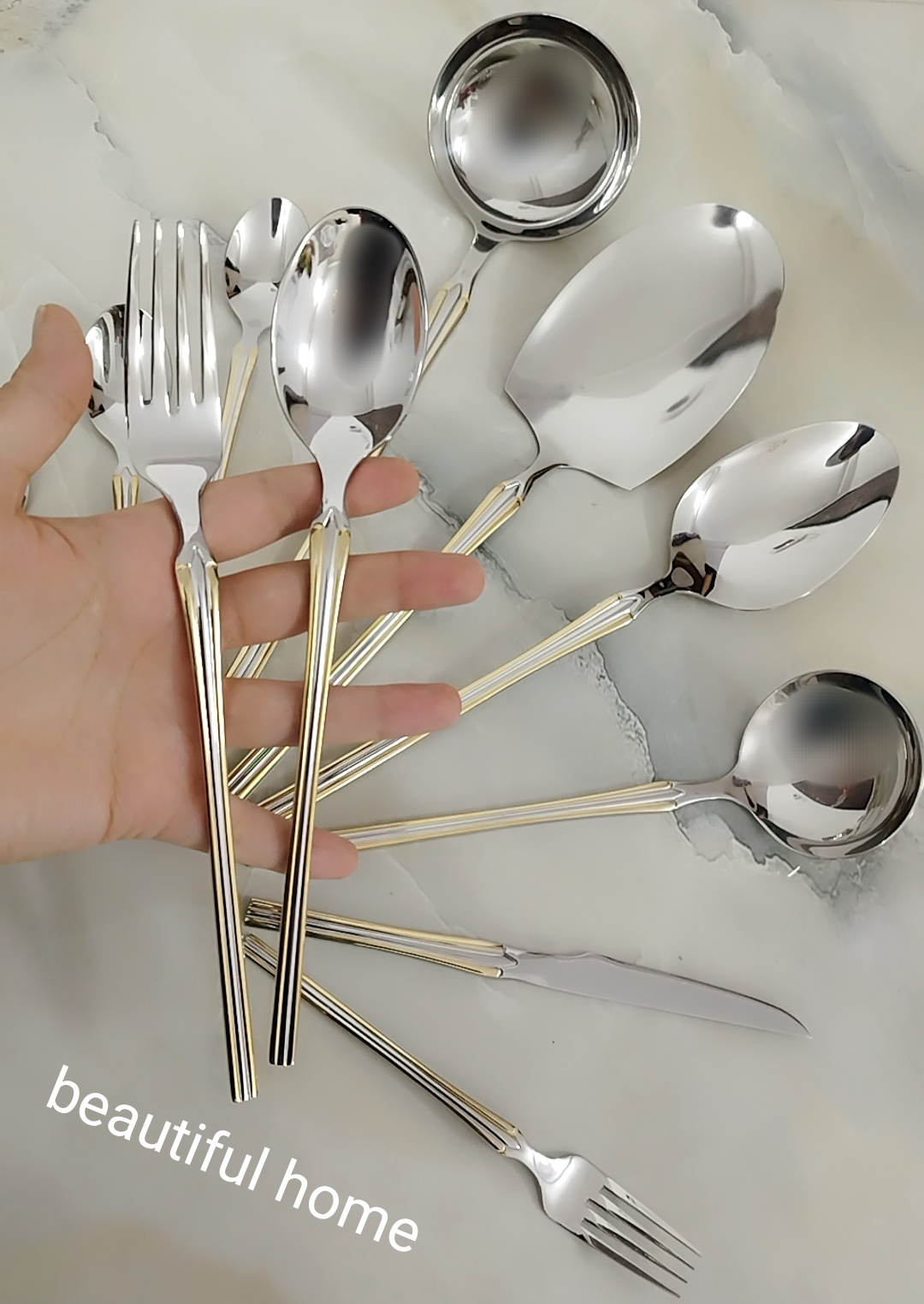 سرویس قاشق و چنگال 24 نفره 120 پارچه دهانه اروپایی نیمه طلایی ریموند آلمان اصلی ۶ میل ضخیم (بدون چمدون)