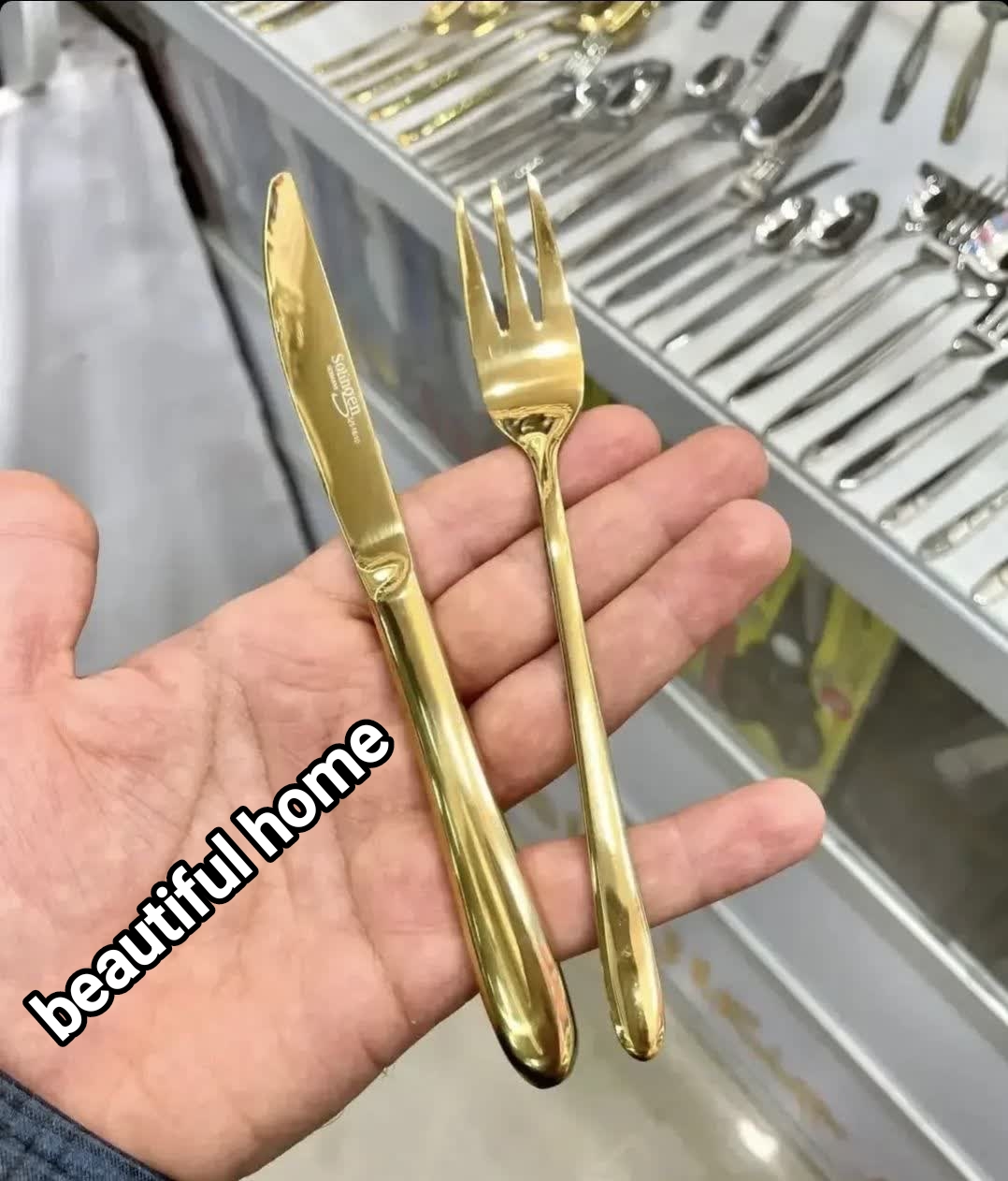 سرویس قاشق و چنگال درجه یک 24 نفره 120 پارچه دهانه اروپایی طلایی زولینگن اصلی ۴ میل ضخیم