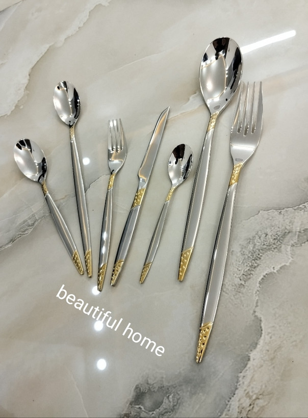 سرویس قاشق و چنگال درجه یک 24 نفره 120 پارچه دهانه اروپایی نیمه طلایی یونیک آلمان اصلی ۶ میل ضخیم