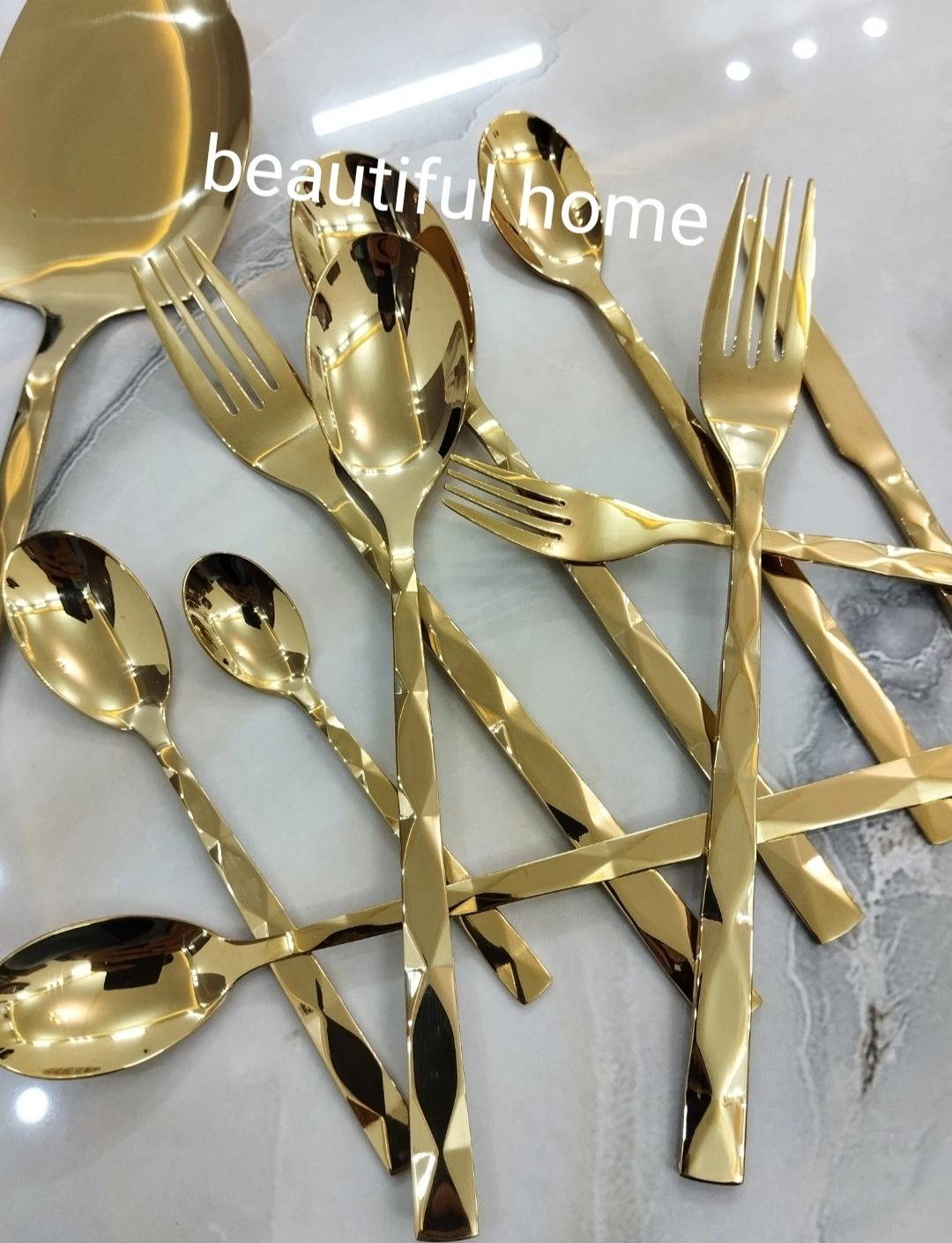 سرویس قاشق و چنگال درجه یک 24 نفره 120 پارچه دهانه اروپایی طلایی یونیک آلمان اصلی ۶ میل ضخیم (بدون چمدون)